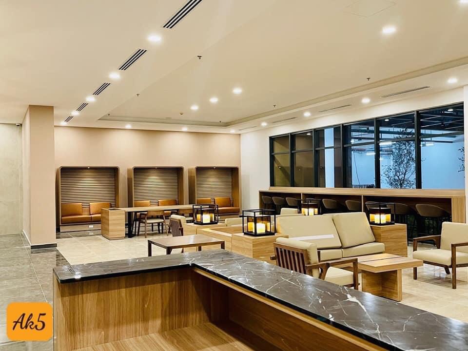 Sảnh chờ, có không gian để làm việc, trang bị đầy đủ thiết bị ánh sáng, internet.